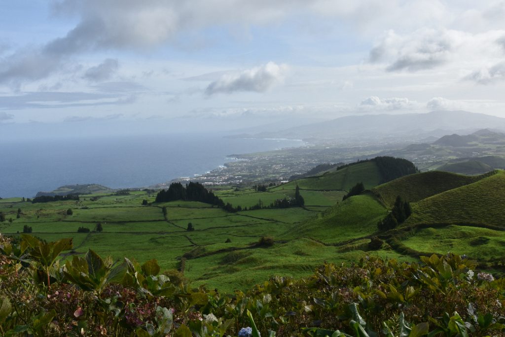 Gestärkt mit Kaffee und Pasteis de Nata (Puddingtörtchen) beziehungsweise einem Croissant sind wir ins Auto gehüpft. Das Wetter soll hier einigermaßen launisch sein, von daher haben wir die Gunst der Stunde genutzt und sind nach Westen gefahren. Dort gibt es eine Caldeira (eingestürzter Vulkankrater) zu sehen mit einem blauen und einem grünen See.