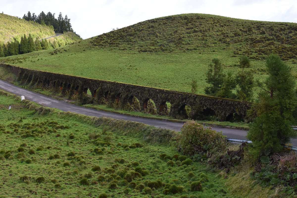 Doch bevor wir dort angekommen sind, haben wir an einem alten Aquädukt angehalten. Gebaut aus Vulkansteinen und über und über mit Pflanzen zugewachsen. Einige rote Flechten ließen den Stein wie rostiges Eisen aussehen. Ein Stückchen weiter haben wir noch ein weiteres Teilstück davon gesehen – ich fand es klasse.