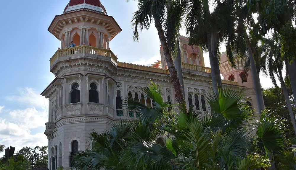 Mit einem Schlenker zu einem Gelände, auf dem vier Uralt-Lokomotiven vor sich hinrosten, sind wir in die Innenstadt zurück, haben eine kleine Snack- und Trinkpause eingelegt und dann beschlossen, den Malecón hinunterzulaufen ins Stadtviertel Punta Gorda. Dort gibt es ein ganz altes Haus in maurischem Stil (Palacio del Valle): Das sieht wirklich ganz hübsch aus. Auf der Dachterrasse haben wir Drink und frischen Wind genossen. Danach sind wir noch zu einem kleinen Park – und das war es eigentlich schon. Brav sind wir zurücgelaufen und haben der Versuchung widerstanden, Bus oder Taxi zu nehmen. Wir haben jetzt zwar Blasen an den Füßen, aber alles was nicht tötet…