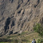 Nach einem späteren und gemütlicheren Frühstück als am Vortage haben wir unsere Rucksäcke wieder mit Wasser und der Kamera bestückt und haben uns auf den Weg gemacht. Einmal die Bordeira-Seite innen lang. Die Bordeira ist quasi der Kraterrand des urprünglichen Vulkans (war ca. 3500 m hoch): Aber es ist nur noch die Hälfte davon übrig, weil die andere Hälfte ins Meer abgerutscht ist und einen Tsunami verursacht hat.