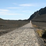 Wir waren recht zufrieden, wieder auf der gepflasterten Straße angelangt zu sein, ohne uns bei der Bruthitze verlaufen zu haben. Aber auf der recht grob mit Vulkansteinen belegten Straße ist das Gehen auch kein besonderes Vergnügen.