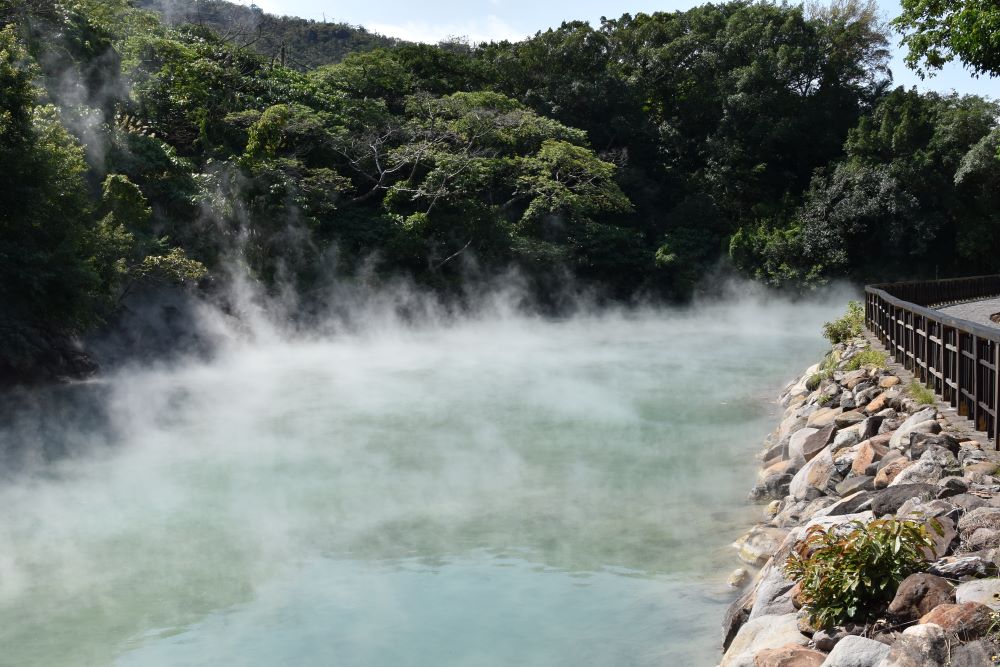 Das Wetter spielte wieder wunderbar mit – erster positiver Harmoniefaktor des Tages. Die Metro war einmal mehr Transportmittel unserer Wahl und brachte uns zu einem Vorort von Taipeh, an dem es heiße Quellen gibt. Erst sind wir durch einen schönen Park geschlendert. Ein hübscher Schmetterling empfing wohl unsere positiven Schwingungen und ließ sich parademäßig fotografieren. Als wir weitergingen, sahen wir eine Gruppe von Leuten, die im Park Tai-Chi-Übungen absolvierten. Sie bewegten sich so fließend und elegant: Auch ganz alte Leute waren darunter, die genauso beweglich und konzentriert mitmachten. Als sie mit ihrer Kata fertig waren, haben einige Frauen mit Schwertern eine Kata begonnen: Auch das sah unglaublich harmonisch aus.