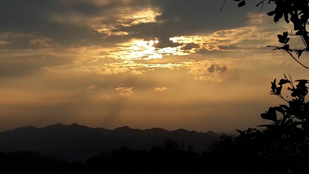 Mit dabei eine 90 Grad Kurve: Das habe ich noch nie gesehen. Wir sind zur vierten, letzten und höchsten Station: Aber von da aus war der Bick über die Stadt nicht so dolle, daher sind wir wieder zur dritten Station zurück. Schnell haben wir die Aussichtsplattform gestürmt, um das Sonnenuntergangslicht noch nutzen zu können. Der Blick auf die Stadt und den Taipei 101 war klasse!