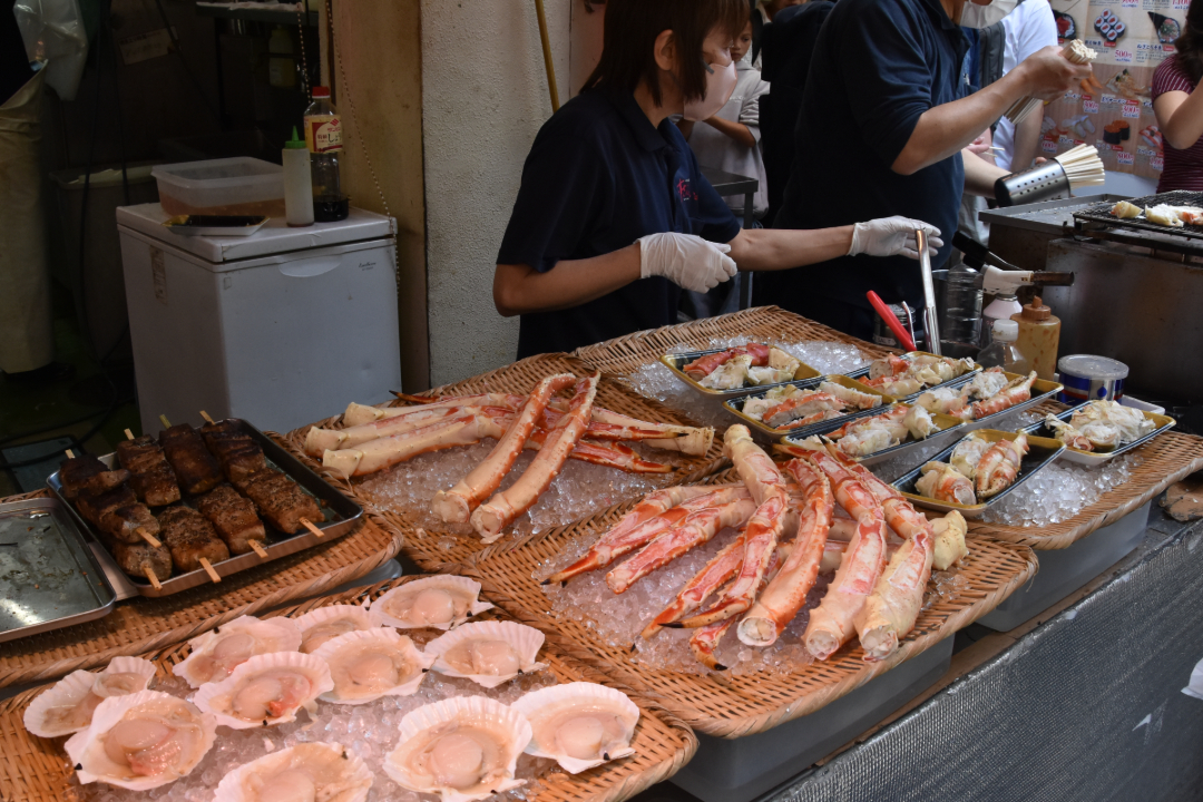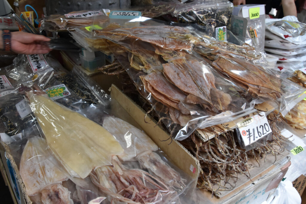 Gleich danach haben wir die tägliche Kaffeedosis noch nachgeholt: An einem Stand, der eigentlich mit Pfeffer gehandelt hat. Lustige Kombi mit einem lustigen Schnacker: Aber der Kaffee war fein. Ich mochte es sehr, durch dieses Markviertel mit sehr vielen Fisch- und Sushigeschäften zu laufen. Auch Haushaltsgeräte und hübsche Schälchen, Stäbchen-Bänke (analog zu unseren Messerbänkchen, aber in sehr viel kreativererer Form) und vieles mehr wurde angeboten.
