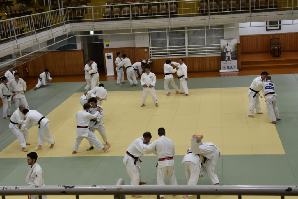 Während Silja zurück zur Unterkunft ist, haben Sönke und ich ein „Pflichtprogramm“ erledigt: Wir sind zum Kodokan, der Geburtstätte des Judo. Das Museum hatte schon geschlossen, aber wir haben eine ganze Weile dem Training im Hauptdojo zugesehen – das war schon interessant. Und es hatte schon was, im Dojo den leeren Stuhl von Jigoro Kano zu sehen.