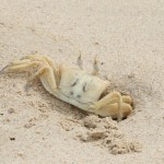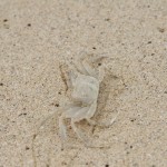 Wir freuten uns über die Krabben: Manche, vermutlich noch junge Krabben, waren fast durchsichtig und nicht besonders mutig – ratzfatz waren sie in ihren Löchern verschwunden. Gut, nicht ohne Grund: Die Strandläufer waren auch unterwegs … Ein paar größere Krabben allerdings haben sich fast wie Models benommen: Schön haben sie sich präsentiert und sich erst dann zurückgezogen, wenn man sie mit dem Objektiv fast berührt hat.