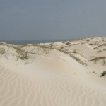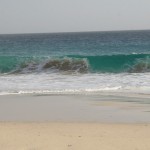 Mit einem Taxi (also Aluguer ohne Mitfahrer) habe wir uns auf eine ca. 50 Kilometer lange Tour in den Süden der Insel gemacht. Zuerst sind wir über die Ribeira Grande (hier eine Brackwasser-Lagune) der Kapverden nach Rabil gefahren: Hübsche bunte Häuser, dieser Ort hat noch Charme. Weiter zum Deserto de Viana: Richtig große Sanddünen – hat auch Sönke zugegeben. Sylt ist dagegen wie der Bungsberg zum Schwarzwald. Da wäre ich gerne noch etwas länger geblieben, aber wir wollten unsere Tour vor Sonnenuntergang schaffen. Über Schotterstraße erreichten wir Povacao Vehla, danach ging es über steinige, sehr holprige Piste (nein, das hätte ich unseren Autos nicht zumuten wollen) zum Praia de Sta. Monica: Ewig langer und breiter Sandstrand – wären da nicht tückische Unterströmungen, wäre es ein perfekter Badestrand. Menschenleer, aber wir waren auch spät dran.