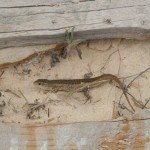 Wir haben die nordwestliche Halbinsel links liegen lassen und sind eine Straße Richtung Nordküste gelaufen, die laut Reiseführer erst durch eine Müllhalde führen sollte: Aber hier ist entweder den neuen Hotelbauten, dem neuen Naturschutzgebiet oder den drei Windkraftanlagen Tribut gezollt worden und offensichtlich mit dem Bagger aufgeräumt worden. Nun präsentiert sich die Landschaft als ziemlich öde: Aber wenn man genau hinschaut, gibt es auch da wieder einiges zu entdecken. Die gelbe Spargelblume hat sich hier schon breit gemacht, die wilden Esel nutzen das Gebiet und kleine Vögel. Die waren Klasse: Dreimal wild gefiept, dann Sturzflug, so dass man dachte „Ej Junge, Vorsicht, das gibt gleich Kopfschmerzen!“, aber kurz vor dem Erdboden in waagrechte Fluglage gewechselt, als ob unter dem Radar durchgeflogen werden müsste …