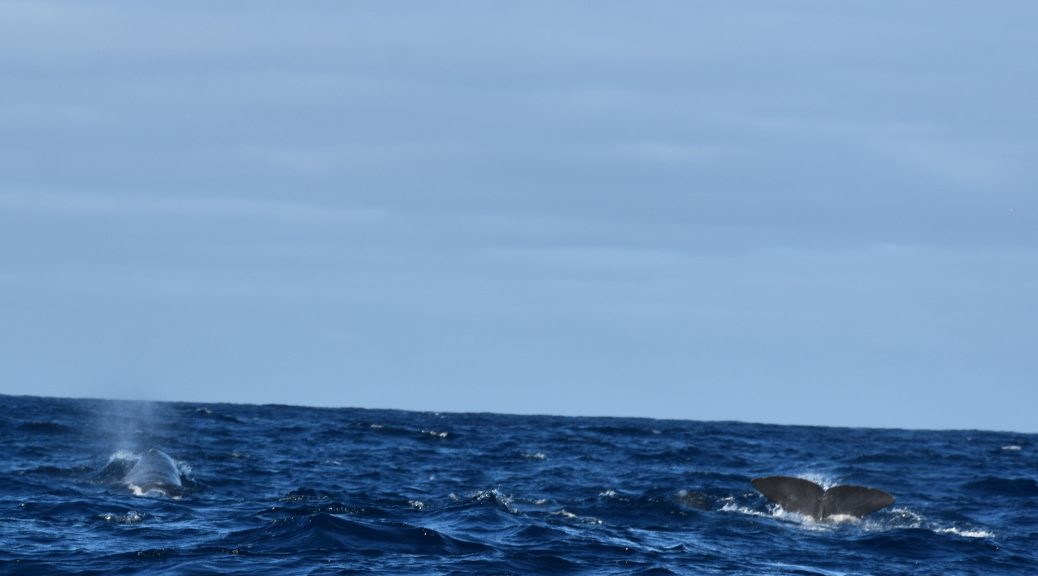Es hat alles gepasst: Das Wetter ist tatsächlich besser geworden, so dass wir früh am Morgen ohne viel Frühstück im Bauch im Hafen von Villa Franca do Campo standen. Wir haben eine Whale-Watching-Tour gebucht: Wir wissen, dass das Meer kein Zoo ist und haben von daher unsere Erwartungen etwas heruntergeschraubt. Wir hatten uns diesen Anbieter herausgesucht, weil sie sehr verantwortungsvoll mit ihren Touren unterwegs sind und wissenschaftliche Untersuchungen unterstützen.