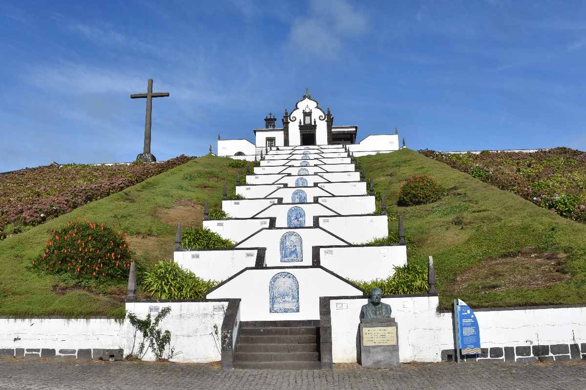 Anschließend haben wir nochmal diese Treppenkappelle besucht: Das sah doch gleich anders aus als gestern im Nebel. Zudem hatten wir heute einen schönen Blick auf die Laguneninsel.