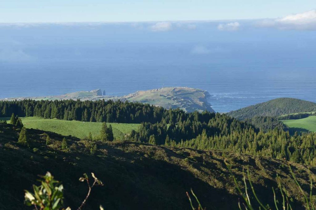 Kurz vor Ribeira Grande sind wir Richtung Osten abgebogen und dann gleich wieder Richtung Süden: Wir wollten über die Nordost-Flanke des Fogo wieder zurück. Ein kleines Sträßchen, vorbei an kleineren Fumerolen und einem Thermalbad führte den Berg wieder hinauf. Eigentlich wollten wir den Kratersee nochmals von der anderen Seite sehen, aber das Sträßchen wurde zu rumpelig, so dass wir lieber umgedreht sind und eine bessere Straße genommen haben.