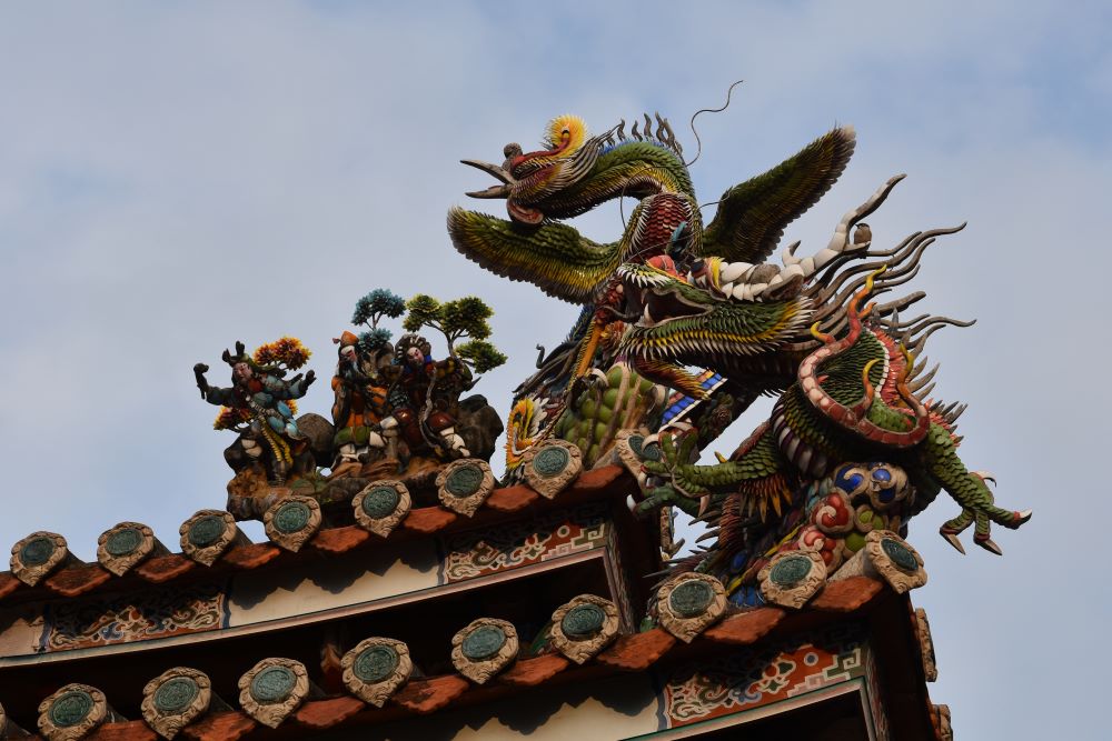 Vom Museum aus sind wir rübergefahren zu zwei Tempeln: Dem Baoan Tempel und dem Konfuzius Tempel. Ersterer war prächtig anzusehen mit Drachen- und Phönixfiguren auf den Dächern. Daneben waren oft kleinere Szenen mit kleineren Figürchen dargestellt: Die sehen so nett aus. Eine kleine, alte Frau sprach Jesko an und nach kurzem Gespräch führte sie uns zu einem Aufzug hinter dem Gebäude. Als wir aus dem Aufzug traten standen wir auf einer Terasse: Zum einen hatten wir einen tollen Bick auf das Dach des Tempels. Und zum anderen war dort oben noch ein weiterer, sehr prunkvoller Tempelbereich. Papst Franziskus hatte in diesem Kloster zum ersten Mal den Führer der Taoisten besucht. Wir sind noch rüber in den Konfuzius-Temepl, aber der war deutlich schlichter.