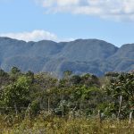 Wir beschlossen, unseren „Hausmogote“ Mogote de Valle zu umrunden. Erst auf einem breiten Weg, dann sind wir auf einen der kleineren Feldwege abgebogen. Ja, und dann war da erst ein wenig Matsche, wo man seitlich vorbei fahren konnte. Dann aber wurde es immer matschiger und Sönke musste unbedingt auf die andere Seite wechseln: Ein reichlich matschiger Schuh war das Ergebnis. (Ich hatte ein leichtes déjá-vu zum letzten Jahr, als mein Schuh reichlich unfreiwillig nass geworden war). Ich jedenfalls habe mich ganz zickig geweigert die Wegseite zu wechseln und habe schiebenderweise eine günstigere Stelle gefunden. Wir entdeckten einen kleinen trockeneren Parallelweg und haben diesen genommen. Leider endete er an einem Stacheldrahtzaun. Sönke hievte sein Rad darüber und wollte rüberklettern. Protest meinerseits! Ende vom Lied? Er hat mein Rad auch darübergehievt und ist geklettert und ich bin das kurze Stück zurück und am schmalen trockeneren Rand zu Sönke gelaufen. Irgendwann sind wir aus dem Schatten des Mogote herausgekommen und dann wurde es besser. Wir erreichten das zweite Feldcafé der Tour vom Vortag und genehmigten uns erst einmal einen Zitronensaft zur Erfrischung.