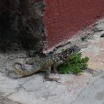 Unser letztes Frühstück in Trinidad haben wir einmal mehr genossen. Wir hatten Zeit, denn das Taxi sollte uns erst zur Mittagszeit abholen. So haben wir gemütlich unseren Schriftkram erledigt, den Blogeintrag ins Web gestellt, die Rucksäcke gepackt. In einem Restaurant haben wir noch ein paar Fischkroketten zum Mitnehmen gekauft: Während wir schnabulierend über den Touristenmarkt (alle Scheußlichkeiten, die die Welt nicht braucht) zu unserem Casa zurückliefen, rief uns eine Marktfrau zu „Oh, sie hätte auch Hunger!“. Sönke hat ihr seine letzte Krokette angeboten, die sie gerne genommen hat. Und auch meine zwei letzten Kroketten waren rasch an zwei weitere Frauen verteilt. Auf dem Weg in unser Casa haben wir noch ein paar Eidechsen mit Ringelschwanz aufgestöbert.