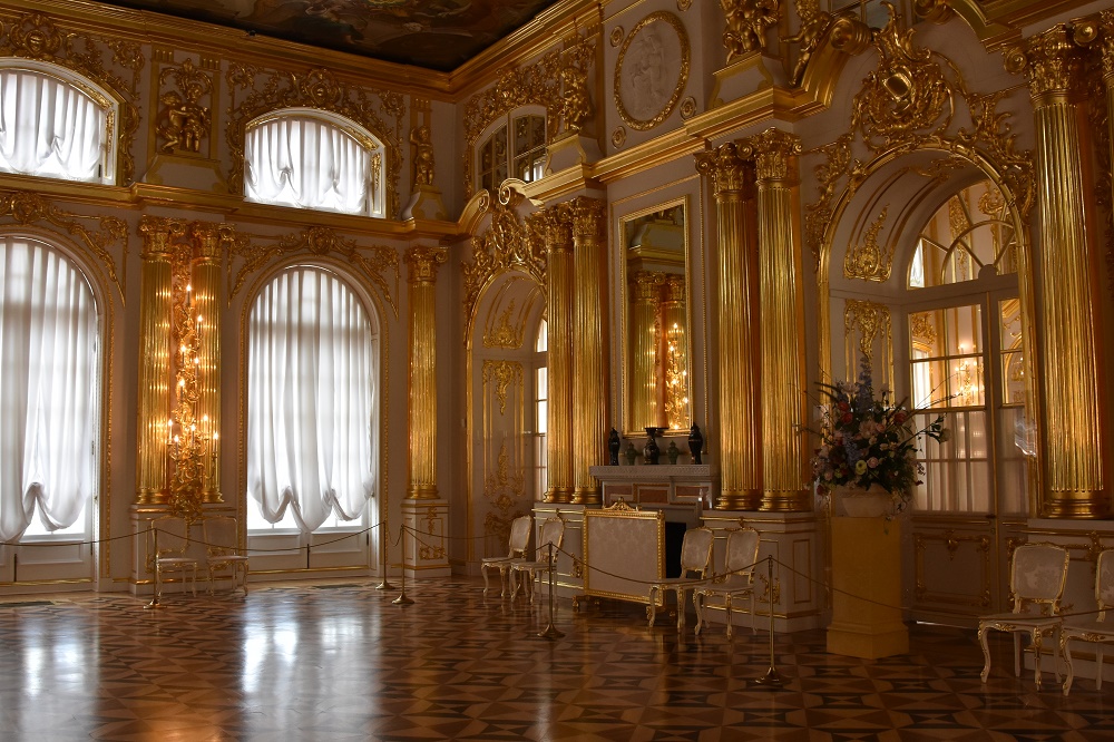 Unser letzter voller Reisetag ist angebrochen. Die vergangene Nacht war verdauungstechnisch etwas unruhig gewesen und so ganz topfit war ich heute morgen nicht. Insofern war ich ganz zufrieden, dass erst eine ganze Stunde Fahrt mit dem Bus nach Puschkin zum Katharinenpalast hatten. Schon ganz gespannt war ich auf das Bernsteinzimmer.