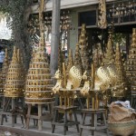 Nach kurzem Frühstück im Hotel waren wir einigermaßen früh auf der Straße, um Mandalay zu erkunden. Angenehm kühl war es noch. Zuerst sind wir durch einen Markt gelaufen: Da gibt es wirklich alles, was aus Plastik ist – und noch mehr. In einer Ecke gab es Gewürze und allerlei getrocknete Blätter, Hölzer, Früchte: Ich schätze, dass diese Sachen mehr für medizinische Zwecke vorgesehen sind. Hätte schon was von Alchemie …