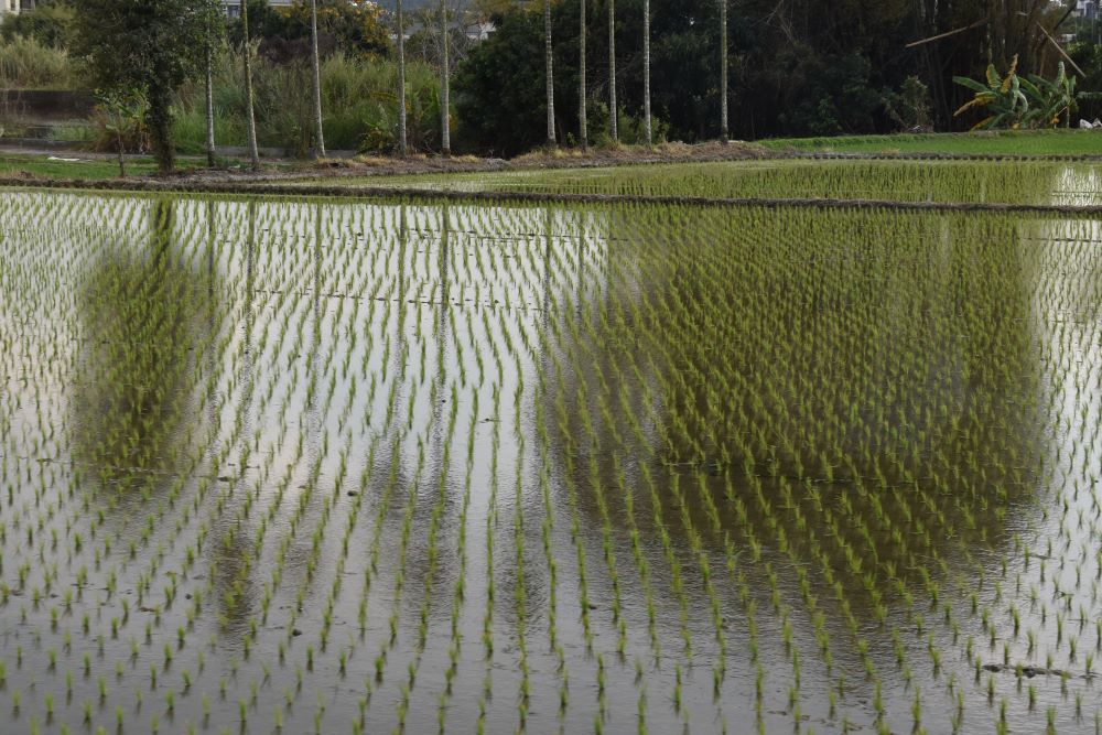 Noch eine kleine Restwoche haben wir, um den Osten der Insel zu erkunden. Wir hätten die Alternative gehabt über Taipei (also über den Westen – Norden) nach Hualien zu fahren oder über den Süden. Das haben haben wir vorgezogen, da wir diese Gegend ja noch nicht kennen. So sind wir erst die Küste des Südchinesischen Meeres hinuntergefahren, haben dann durch viele Tunnel rübergewechselt an die Pazifikküste. Wundervoll blaues Wasser: Ich freue mich schon sehr auf den morgigen Tag, wenn wir mit dem Auto die Küste näher erkunden können. Der Zug ist dann durch das East Rift Valley gefahren: Hier treffen die eurasische und die philippinische Platte aufeinander. Zudem ist das Tal zwischen dem Küstengbirgszug und den Central Mountains (deren höchster Berg Yushan die 4000 Meter-Marke knapp verfehlt) mit dem besten Ackerland der Insel ausgestattet. Viele, viele Reisfelder haben wir gesehen und es soll viel Kampfer dort wachsen: Allerdings weiß ich nicht, wie der aussieht.