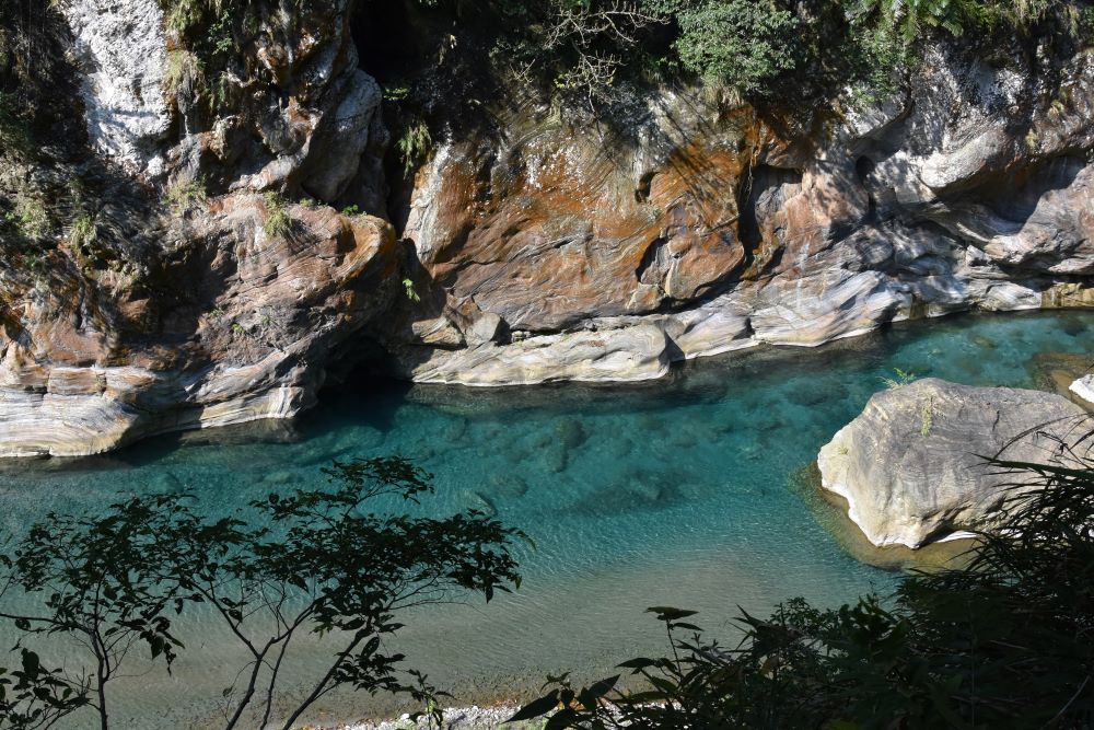 Aufgrund der Wettervorhersage, die am Vormittag noch Sonne, nachmittags aber Regen prophezeite, sind wir gleich in der Früh nochmals zur Taroko-Schlucht. Wir wollten noch gerne einen etwas längeren Trail in eine Seitenschlucht absolvieren. Mit einem Mietauto waren wir schnell am Einstieg und sind bei wunderbarster Sonne losmarschiert.